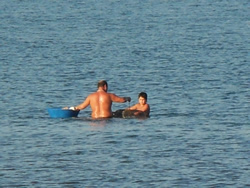 We watch the activity on the water, people making a living, or just a hobby perhaps in the shallow waters nearby?