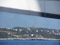 As we pass the town of Demre (Kale being it's modern name) we are caught up by vessels exiting Kekova Roads, we prefer to sail when possible, not all do the same. We were passed by one vessel with his head sail out motoring, the sail kept collapsing, we would have been worried about damaging it, he clearly was not?