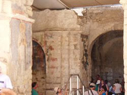 One passes numerous unmarked tombs, visitors walk on the mosaics floors which are centuries old?