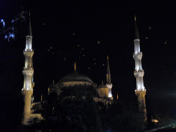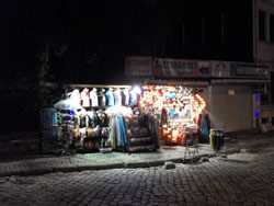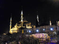 The time soon passes, after a short rest and nice hot shower we leave the warmth of the hotel to find "dinner", darkness already fallen by now. We make the short 5/10 minute walk towards the Blue, or Sultanahmet Mosque, we were very impressed with it's night lights. All open shops, gift or grocery all use lighting to attract attention it seemed?