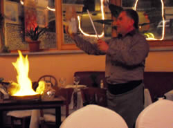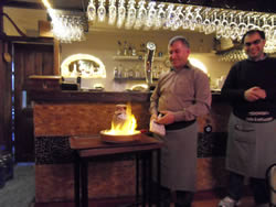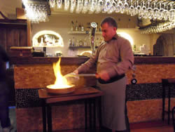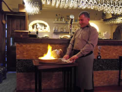 Ann's dish arrives, it is finished off and the base of the pot sheared off and served.
