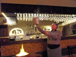 We wander back towards, and, eventually past the hotel and are greeted by a very polite gentleman outside the Aloran Cafe & Restaurant "selling his wares". We accept his invitation and make our way inside, into the warmth. We note some activity across the room at another table, it is explained to be an Ottoman style casserole "Etli Güveç", meat stew cooked in terra cotta pot. The meal is finished off at the table, then the base of the pot is severed off and served - that is good enough for us!