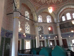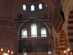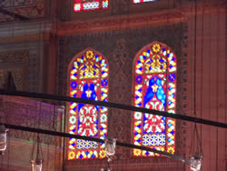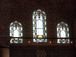 The "mihrab" gives the direction of Mecca, illuminated by the highly decorative windows.