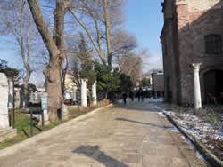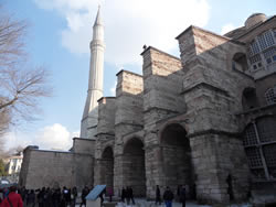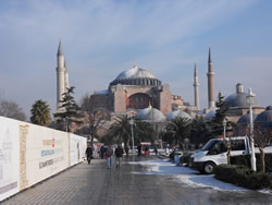 As you exit the Mosque you are greeted by the impressive view of Hagia Sophia across the public park area.