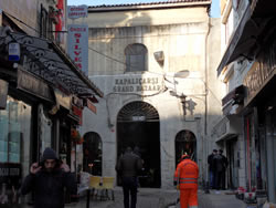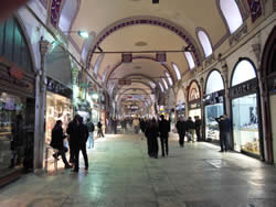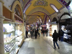 The Grand Bazaar (or Kapaliçarsi, meaning covered bazaar in Turkish) is acclaimed to be one of the oldest shopping centres in the world. It was originally constructed in 1461 under the reign of Sultan Mehmet the Conqueror. Today it is acclaimed to cover 45,000 sq meters, more than 3,500 shops over 64 streets. It is a city to itself with banks, restaurants, post office and it's own police force - a total workforce of approximately 22,000 workers at peak times! The bazaars activity during our visit is relatively low, most shops not even open, certainly not poring their stock out into the walk way as is the norm, there is just not the people around. We joke and laugh with the proprietors as they approach us, "it does not matter how cheap their prices are, if you do not want or need it!" we repetitively explain to them. We leave without a single purchase!