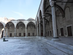 As one exits Hagia Sophia passing by the numerous fresh water taps, an act of pious, providing free water to the poor, one can see the splendour of the adjacent Tomb of Sultan Ahmed.