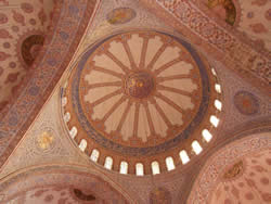 Internally, although the floor plan is again square it is broken by a series of domes surrounding the central great dome, each one now covered by amazing frescoes, these are not of the original decoration. This amazing roof structure supported by four magnificant, huge columns. The whole of the internal space is fed with natural light via wonderful, decorative windows, the detail of each being amazing.