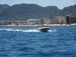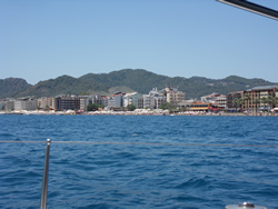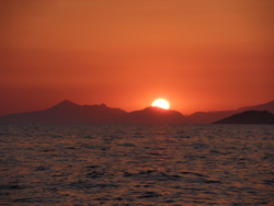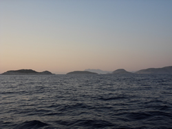 As we arrived off the south of Nisis Simi the available wind was so light it was of no use to us, we had chosen to use a deep channel called "Stenón Seskli" separating "Nisis Seskli" from the mainland of the island. This would further reduce the length of our journey. The sun set as we entered the channel, the channel being almost one mile wide at times gave us no issues. Our journey continued through the night rejoining the Turkish coast at "Karaburun" on the peninsular to the south east of Marmaris. We worked local, available winds with our sails but the last twenty miles or so was completed totally under engine power with our mainsail to complement the engines effort. We rounded "Kádirga" and it's reef about 3am and turned north towards "Marmaris Limani". We had seen no other vessels since the commercial traffic to the south of "Nisis Simi" now there were a couple of vessels joining us, moving into the Limani from the east, numerous small fishing craft were busy around, most totally unlit? As we traveled through "Sark Bögazi", the channel into the Limani we were approached by a large gullet displaying no navigation lights at all, an interesting section of our journey. As day light was breaking about ten, fully dressed tourists could be seen sleeping in different groups the beech, a few were having an early paddle on their way home from their night out. Unfortunately we were also subjected to foul language and arguing as a group of four young English men had some sort of disagreement walking back to their beds completely sober of coarse? We eventually dropped anchor about 0530, made Sailaway secure, switched on our anchor lights and retired for a few hours of well earned rest, we had only been able to catch an hour or so's sleep during the trip predominantly due to the noise and heat from the engine.