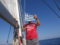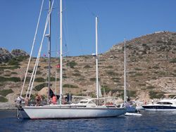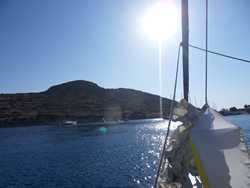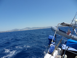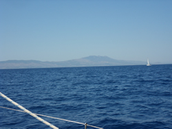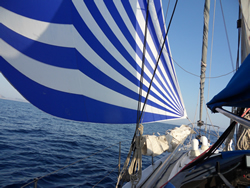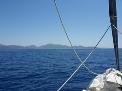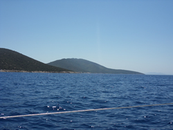 Winds were very light, the Greek islands ahead of us hidden in the mist, we made way under power hoping for wind ahead. Our chosen route, will take us into Greek waters and along the south coast of the Greek island "Nisis Simi" saving us quite some time rather than around the north of the island remaining in Turkish waters.