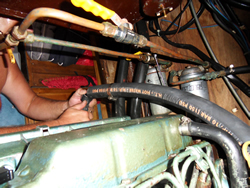 We came to leave and as I checked the fuel levels I noticed that one of the coolant hoses showed signs of perishing, we could have a lot of motoring ahead of us so I thought it best to change the hose and got stuck into the task.