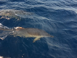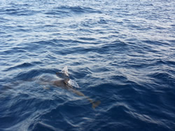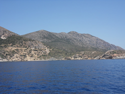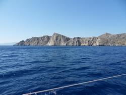 As we reach the centre of Gokova Körfezi, to the east of the Greek island of Kos, we are approached by a pod of dolphins, they stay for only a short time, get bored and leave, heading east up the bay.