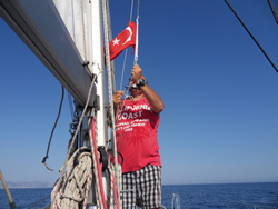 We dropped our Turkish courtesy flag and replaced it with our Greek, not sure if the gullets even bothered with the nautical courtesy?