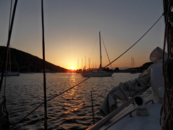 We round the point and make our way into the anchorage at Knidos, fortunately not too busy we pick our spot and drop our anchor and settle down for the evening. Our plan was to go ashore to the restaurant but before I decide to go in the water for a swim about, I chokingly tell Ann that I am to look for the anchor, not sure why it is always at the end of the chain? We were pleased that I did this time as the anchor was not correctly set, it was in fact, lying on it's side, the chain had become trapped under the corner of a large rock giving us the impression that it had dug in? I swam back to Sailaway and explained the situation to Ann, to complicate things the wind was now getting up. It was an hour or so before we were happy with our position in this small anchorage relative to other vessels, and, by the time I had swam out and checked it again, this time, perfect it was too late to go ashore to eat.