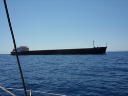 We were now motoring along side a busy shipping route, a constant train of freighters in both directions, in a short time we approach "Deveboynu Br" we make the decision to spent the night at Knidos, hopefully picking up some more wind in the morning?