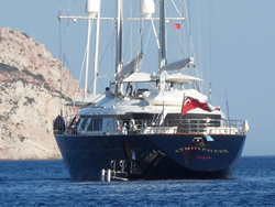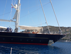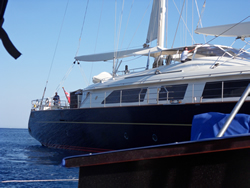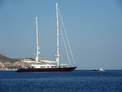 As we sat in our cockpit a "super yacht" came in, approximately 35 metres long, it even had a small support, 10 metre power boat with it - "cash gone silly?", a very impractical combination for many reasons? The vessel obviously "dwarfed" Sailaway, he pushed his way in and then left? I must confess both Ann and I agreed that if it had been a gullet of similar size, the skipper would have got it in with room to spare!