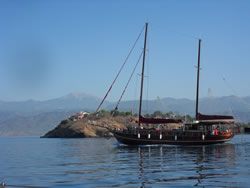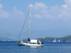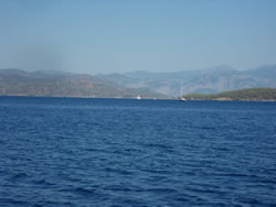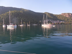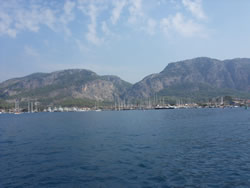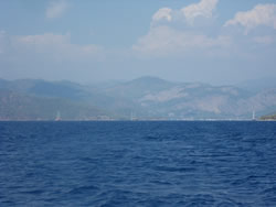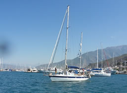 Our speed remains steady, we quickly pass Mick and Susie, as we pass between Kizil Adasi and the mainland making way for Fethiye the wind begin's to drop off as one would expect. We are able to keep Sailaway under canvas until well inside the harbour, it is then canvas away, engine on and we motor to the anchorage we now know so well.