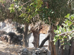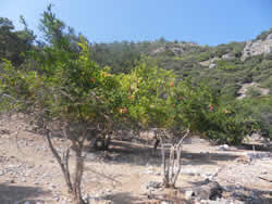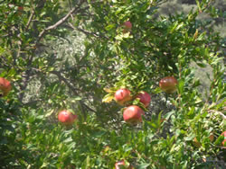 The dinghy takes us both an hour or so, nearby are pomegranates and eucalyptus trees.