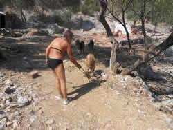 In time we are joined by goats, struggling to get up to the eucalyptus leaves, they eat any thing they can find obviously.