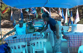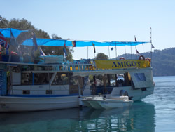 The only real job we set ourselves for today is a last clear of Sailaway's hull before we leave her for some time, when we do return she will be lifted out of the water, cleaned and anti fouled. It takes the two of us little more than an hour with goggles, snorkel and weight belt. She is only lightly soiled from the weeks sitting stationary in Fethiye harbour, which surprised us a little. After we had finished work and showered we had promised ourselves a cold beer down the bay in "Amigo's" restaurant.