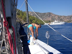 We are to leave Sailaway for the duration of our return visit to the UK in Kas Marina, just over 70 nautical miles to the east of us. Before we leave for Kas we have to dive to replace our propeller shaft anodes we had to remove to complete our gearbox repairs. We also need to pick up fuel, water and provisions as is the norm. We see Mick & Susie (Razzmatazz) leave just a head of us, they will motor we plan to use the developing daily winds to take us back north east, up to Fethiye.