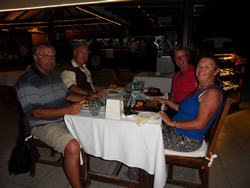We arrive to eat at Amigo's about 7pm calling in on Susie and Mick on the way, they had already eaten but they would join us for a drink later. They suggest we order our food, (I order wild bore, shot by the father, Ann goes with the chicken) and while it is being prepared, join them for a glass of wine on board, that is what we do. A couple of glasses later we return to Amigo's for dinner followed closely by Mick and Susie. We have a table set for them just in case they are hungry, you are always served with two much food? Mick and Susie were adamant that they were not hungry, they would just join us for a drink or two, still Mick did manage a vast proportion of the chips? Eventually they did try some things other wise it was going to waste.