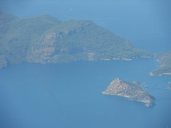We make our way to the channel that lies between the mainland and Domuz Adasi, taking us out into Fethiye Körfezi. The winds disappear as we reach the channel so we role up our headsail and motor through.