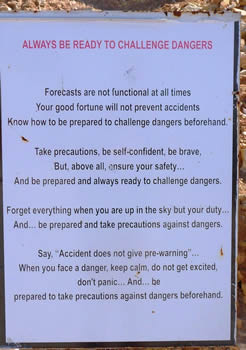 The new restaurant is situated on the ramp from which the paragliders jump off, a great view of the action and a clear listing of instructions, poorly translated but with a clear important message as not to panic if any thing does go wrong, again all makes sense?