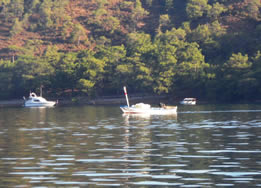 The prevailing wind will take us across east over Fethiye Körfezi, we will then head back and enter Skopea Limani through one of the channels between the islands.