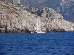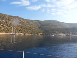 The day arrives that neither Ann nor myself are truly looking forward too, the day we depart for Kas to leave Sailaway for an unknown length of time, but a minimum of a year or so? Our return to the UK at this time of year is a normal happening but this time we have far more work to do, remove and pack sails etc, etc, etc. We are giving our selves a week at Kas to complete all of our listed tasks. The morning is quiet, no wind as yet but very little forecast, we plan to move south, out of the Körfezi some 16 miles to Gemiler Adasi to the south east, over night and then move to Kalkan breaking the 60 mile trip up into stages.