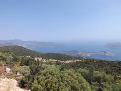 We started this trip high above Kas as an excuse to charge up the car batteries, for a few weeks now we had only carried out short runs, mainly just into town, always with air conditioning on - that was our excuse anyway! It was worth recording in our opinion due to the fantastic views of the nearby islands and Kas itself. Not sure how we found the roads, the satnav kept telling us we were on "unpaved roads" probably an accurate description at times? The vegetation high up was green, forest-like with a few stone constructions found occasionally, they looked like man made wells in two of three small fields on the roadside. We were told later they were actually reservoirs used to store the rain water?