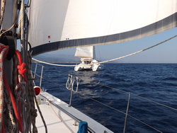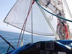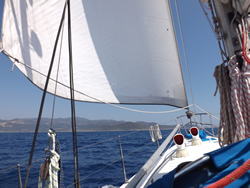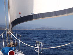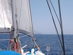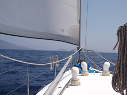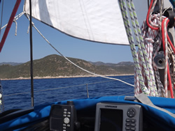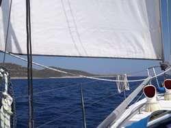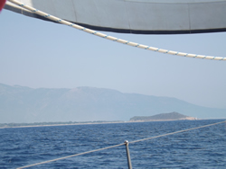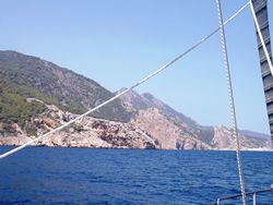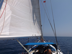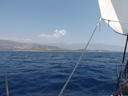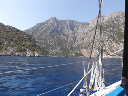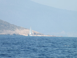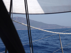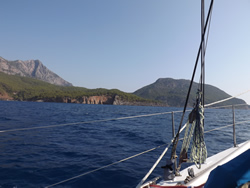 As we passed the "Blue Cave" on "Ashil Adasi" and cleared the eastern point of "Kekova Adasi" we could feel the light south, south westerly prevailing winds, only light, 6-8 knots but usable.