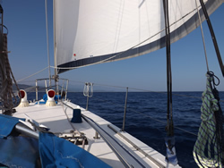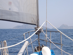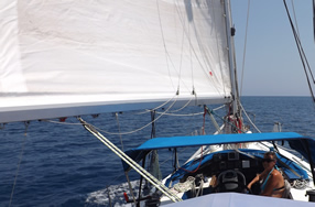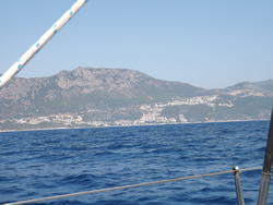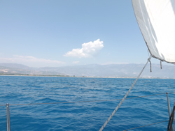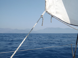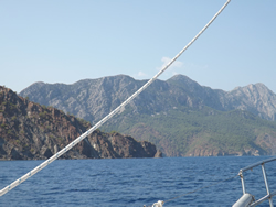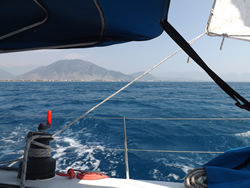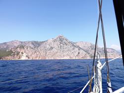 We turned south into the wind and raised our main sail, put Sailaway back on coarse, switched off the engine and rolled out our genoa, the 6-8 knots of wind was giving us 6-7 knots of speed through the water. It was just a case of passing our time waiting for the headland ahead of us to arrive from which we would turn northeast and make the final five miles to Finike.