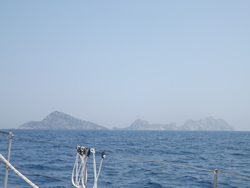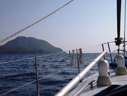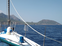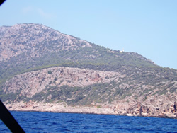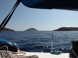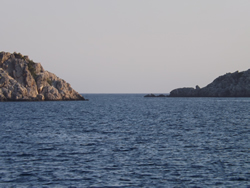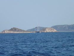 By the time we reached Taslik Burnu the wind was nil, we dropped our canvas and started out engine, we tidied up as we motored around the headland, past the islands.