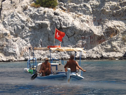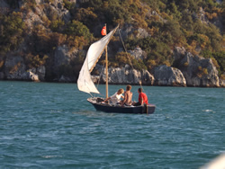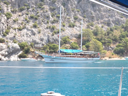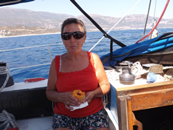 At least the winds were usable, up went the canvas and off went the engines, at this pace, 3-4 knots there was little to do but sit back and relax, Ann is plentiful of her usual cheek! We make our way around the peninsular, past Kas town and along the coast line towards the maze of islands along the coastline.