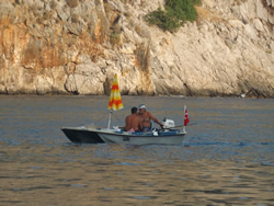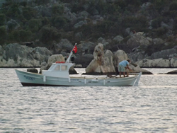 In the morning the fishing begins at dawn, even the Kaptan is out early trailing lines!