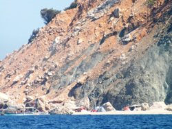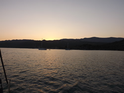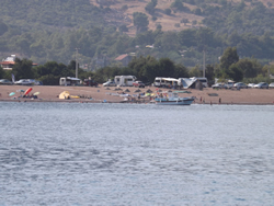 We were surprised at the size of the Limani, although indications showed it to be a beach area of about one mile in length. It had also developed significantly from the information in our pilotage, it was now a full resort, all the water play things were here, even a quay for the trip boats. It is a very pleasant setting however the evening, off shore winds did blow some what. We were surprised to be the only foreign pleasure craft at anchor in such a setting, although we were joined by an other just before dark.