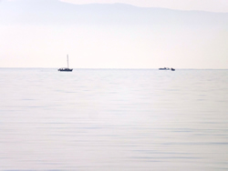 In time our turning point became visible through the mist, but unfortunately the wind also began to drop, more sail needed but the wind continued to drop further, it appeared that we were already coming to the limits of the daily prevailing winds?
