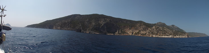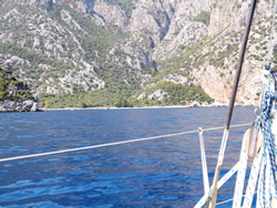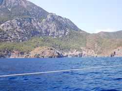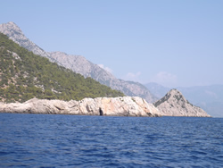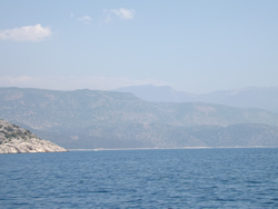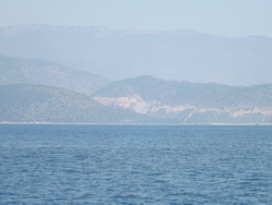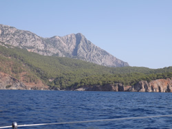 The mountain of "Musa Dagi" dominates this whole coastline, unfortunately nearly always hidden in the mist. We now get the odd glimpse of "Tahtali Dagi (Mt, Solymnus)" in the distance to the north of us.