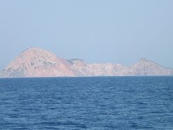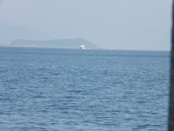 The land mass ahead of us was only barely visible at times through the mist it would be an hour or so at this speed before we rounded the headland taking the channel between the islands and "Taslik Burnu".