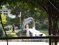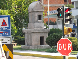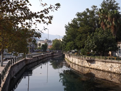 We walked up the river to a small square Ann had remembered as a good source of both food and fresh fruit and vegetables. We bought the fruit we needed and then sat down to eat at one of the small cafes, two coarse's and a drink for 7tl, just over £2! Two teenage lads came to us and tried to hassle us into next door, telling us the food was "cheaper", the older guy who was servicing the establishment in which we sat just stood back? Somewhat confused, but guessing what was going on we picked up our gear and left, walking back towards the waterfront.
