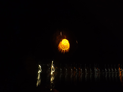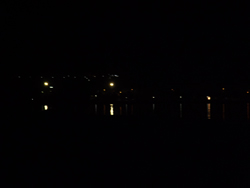 At the head of the bay is a large national flagged coloured onto the hillside, lit remarkably well during the night.