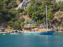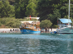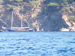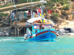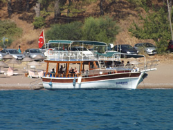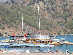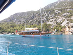 Here as at any other resort the boat trips start early, every thing is ready for the tourists as it should be. We like this anchorage but are some what surprised by the lack of use it gets, we have still only seen one Turkish flagged pleasure craft here which suits us perfectly.