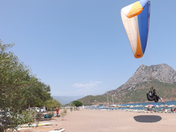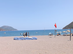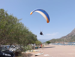The bars, restaurants had all laid claim to a section of the beach, this company offering paragliding had done just the same, people walking on the sand were shouted at to "watch out" as they came down from the sky. A young chap in his early teens had the job of folding the chutes.