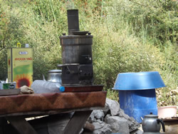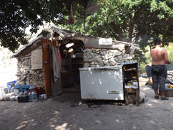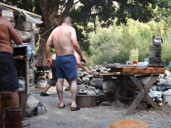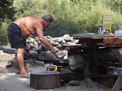 We decide to head over to the second shore side building to investigate, it is a cafe run by the proclaimed "Kaptan" of the Limani. Everything one need to provide a service is there, mostly hand made in true Turkish style. We order a couple of beers and watch the activities, the open fire and pans are used extensively, visitors can cook their own food, for a fee usually as we have seen occasionally.
