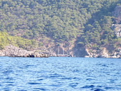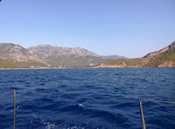 We lift our anchor about lunch time, giving the prevailing winds time to develop, what ever did come would certainly be light should the forecast be accurate. We left Üçagiz Limani and made our way east down Kekova Roads, barely a breathe of wind with us at this stage. As we approached the eastern entrance we became a little more optimistic as we could make out, certainly some wind on the water ahead.