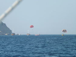 With quite a procession of freight vessels running parallel to us, to and from Altanya, there was quite enough to keep your mind busy. Then, as we drew nearer to Koca Burnu the madness could be seen ahead, the constant stream of gullets, day trip boats and 15 - 20 paragliding sets up in the air at one time, and the hotel density increased significantly to the point of becoming just ugly?