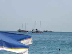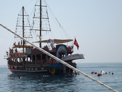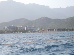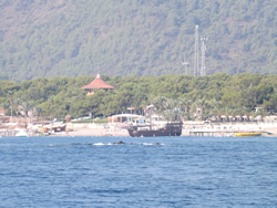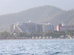 As we got within ten miles of Kemer the coastline changed, from picturesque to a constant wall of hotels and beaches and all of the activities they require.