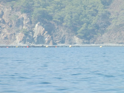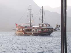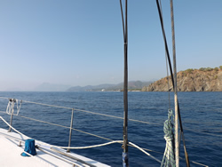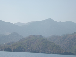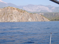 As "Koca Burnu" came out of the mist, the headland around which Kemer sits, the temperature down below decks was just over 40C as a result of the working engine.