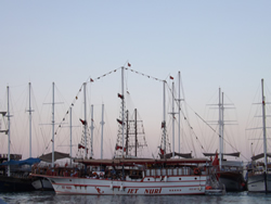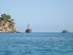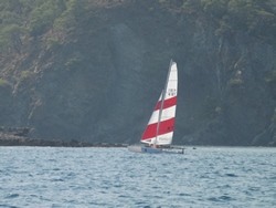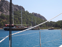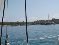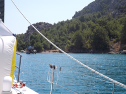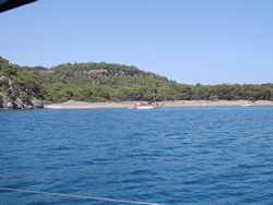 We sat at one of the beach cafes and drank tea for a couple of hours, the winds were about right by the look of it, we in time returned to the marina and left for Phaselis, arriving there a couple of hours later.