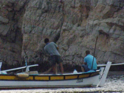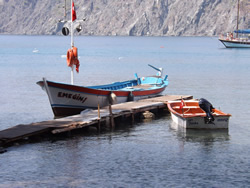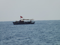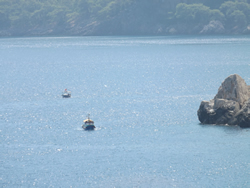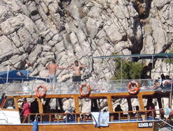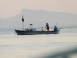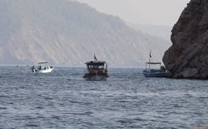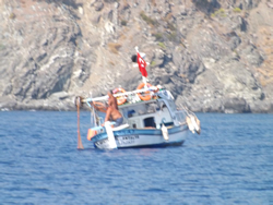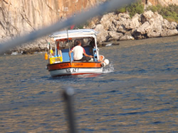 My attention over the last couple of days had been drawn to our electrical system, both our wind generator used to create electrical power from the wind and the engine starting battery. Yesterday I had managed to repair the damaged wind generator but could not get to the bottom of the starting issue, all evidence was pointing towards the need for a new battery. The day began as normal, we fed our ducks and watched the local fishermen working hard at catching the fish. After breakfast we had our daily task of starting and running the engine to recharge our domestic batteries after there work during the night maintaining the fridge temperatures, during July and August it is almost running constantly. The engine battery had just enough power to turn the engine over and start it, this confirmed our believe, that after just less than five years it had just given up. With Sailaway's engine running to recharge the domestic batteries I went over to one of the gullet skippers to enquire as to whether I would be able to source a replacement battery in Kemer, twenty miles to the north or a trip to Altanya would be needed - Kemer would be good enough we were told. The morning northerly winds were in full strength by now, almost 20 knots and the sea was already building. With the engine running we thought we would stick our nose out into open water and see whether we could make Kemer, or wait until the more favourable winds this afternoon and keep our fingers crossed we could get the engine restarted. We packed up and left the security of the bay and entered the two meter plus swell, out in open water our progress was no better, no more than a knot or so of progress, occasionally being brought to a complete stop by the larger waves. We turned around, back into the Limani and reset our anchor, we would wait for the more favourable conditions this afternoon.